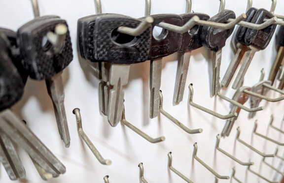 ちょっと日本にはないメーカーの鍵で、無数に展示してある鍵の中から時間をかけて適合しそうな鍵を探してくださり、それでも鍵穴に合うかわからなかった為バイク持参でシリンダーに入るよう厚みを削って貰い、手作業で溝を彫って頂き無事に合鍵を作って頂きました。