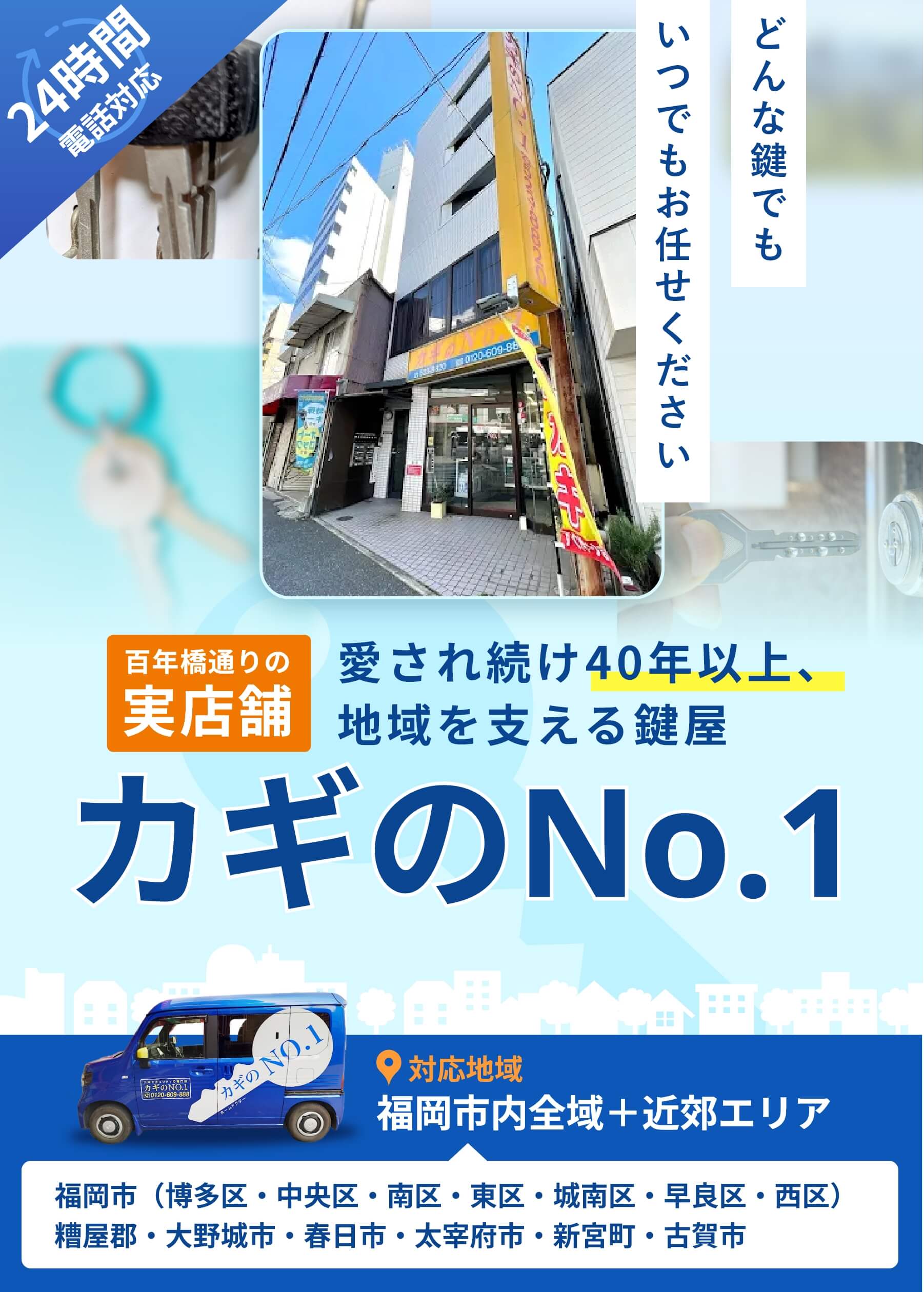 Located on Hyakunenbashi Street, we offer a wide range of services, from emergency unlocking and lock replacement at your location to key duplication in-store and security camera installation.